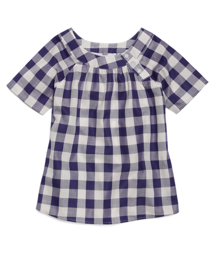 Short-Sleeve Gingham Basketweave Blouse