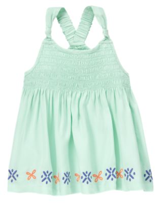 Embroidered Smocked Tank Top