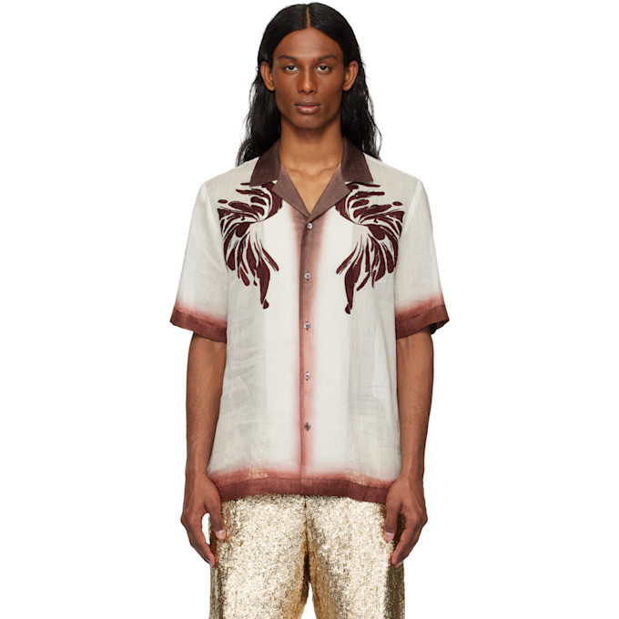 [드리스 반 노튼] [오프화이트] & Burgundy Embroidered Shirt 252358M192002