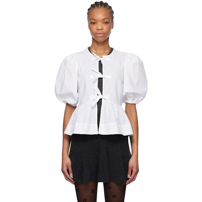![[가니] White Cotton Poplin Peplum Tie Blouse 251144F107002](https://www.ssenseon.com/link/MagicHubHosting.php?Surl=https%3A%2F%2Fimg.ssensemedia.com%2Fimage%2Fupload%2Fb_white%2Cc_lpad%2Cg_center%2Ch_960%2Cw_960%2Fc_scale%2Ch_680%2Ff_auto%2Cdpr_1.0%2F251144F107002_3.jpg&BrandID=GANNI&Pcode=30015114&SetWidth=600&SetHeight=600&type=jpg)