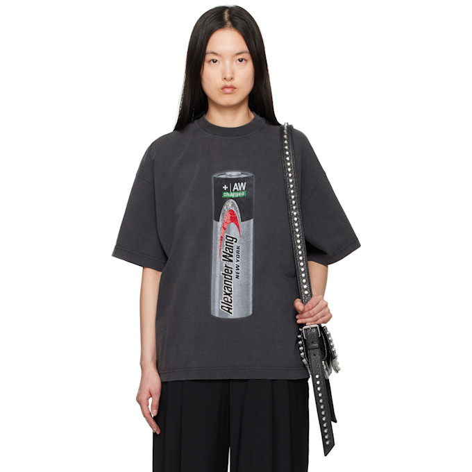 알렉산더왕 [알렉산더 왕] Black Unisex Battery Logo-Print Graphic T-Shirt 251187F110032